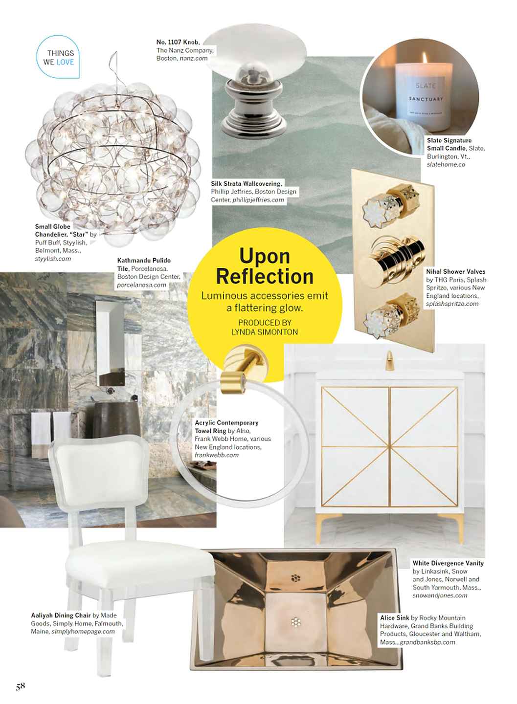 In article, "Upon Reflection," Silk Strata in 9568 Celestine is featured among luminous accessories that emit a flatterning flow.