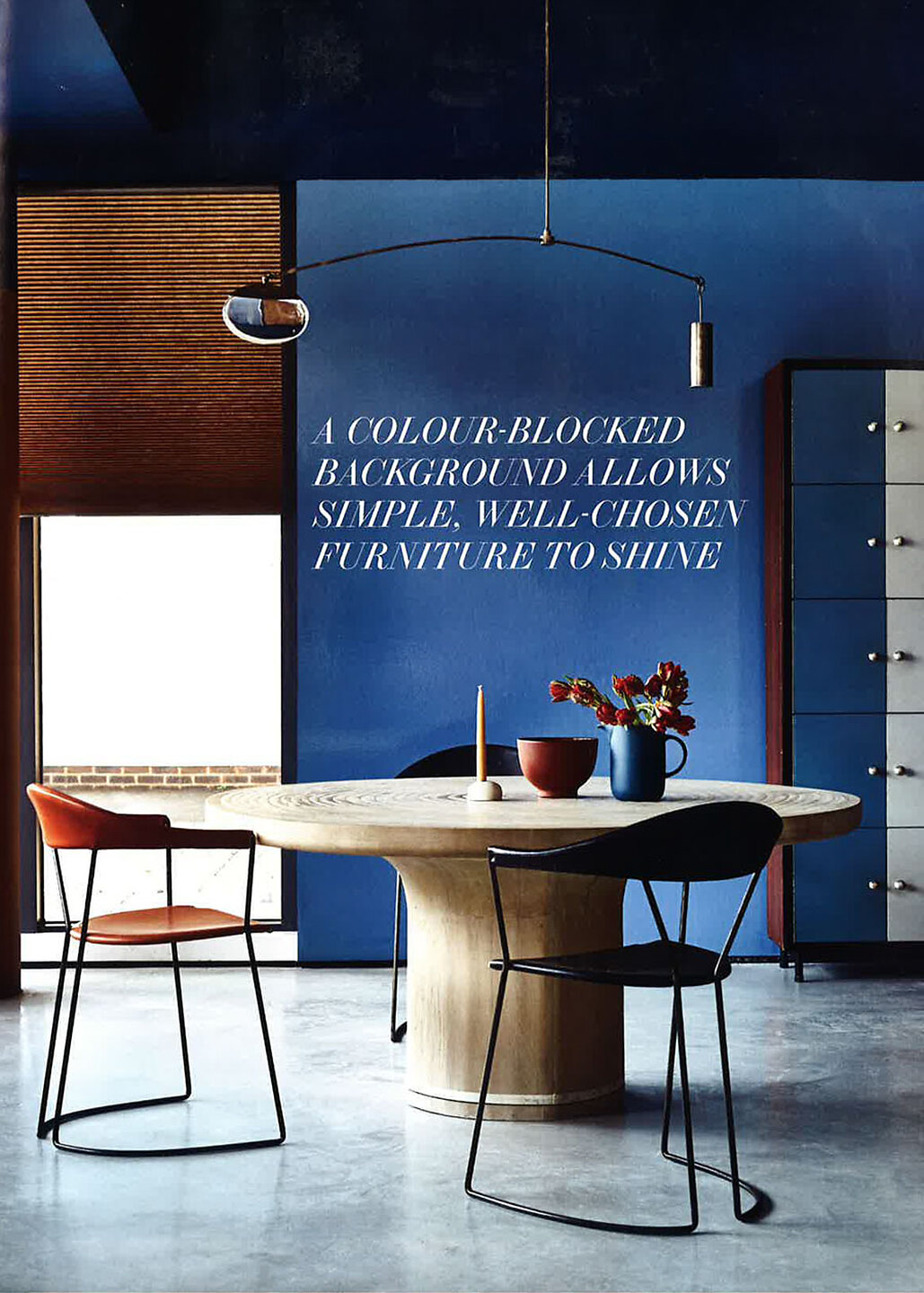 In article, "Colour Block Party," interior designer Ruth Sleightholme featured Vinyl Lacquered 2049 Shade in the living area of a cllient's home.