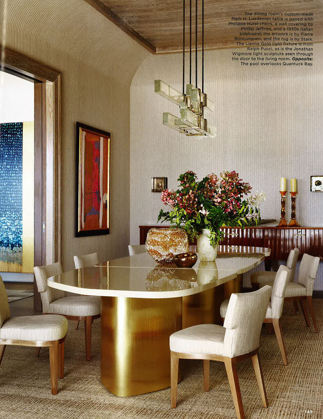 In article, "Mix Master," Interior designer Penny Drue Baird featured Origin Weaves 1633 Calla Seeds in the dining room of a client's home.